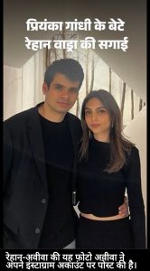 रेहान और अवीवा 7 साल से रिलेशनशिप में हैं। दोनों को ही फोटोग्राफी का शौक है। सगाई में वाड्रा, गांधी और बेग परिवार के करीबी लोग ही मौजूद थे। हालांकि अभी तक गांधी या वाड्रा परिवार से किसी ने भी सगाई की खबरों की पुष्टि नहीं की है।